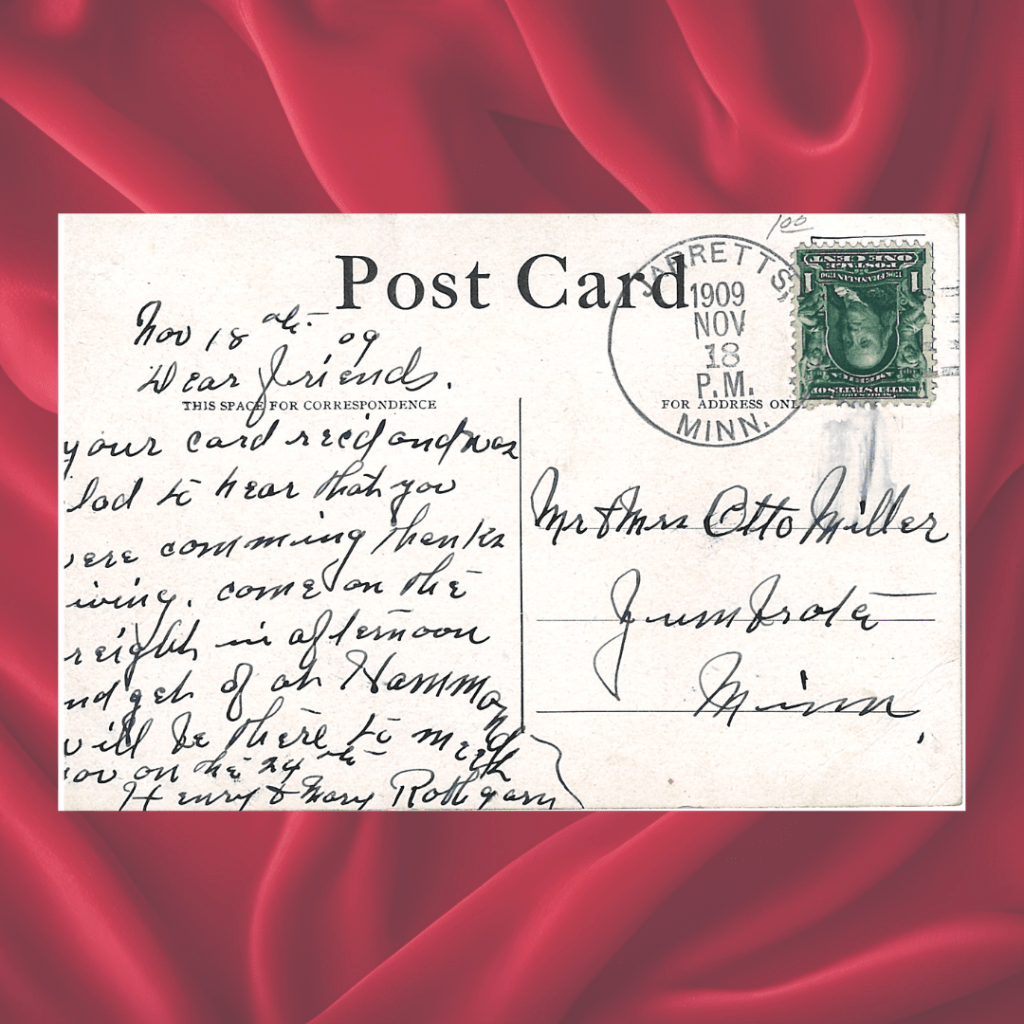 There’s a lot that I love about this card, from the upside down stamp to the beautiful front of the postcard, to the fact that friends were traveling to see friends for Thanksgiving. I wonder if these were young people traveling to see other young people, or older friends and family. I also imagine they took the train, which gives everything a bit of nostalgia.